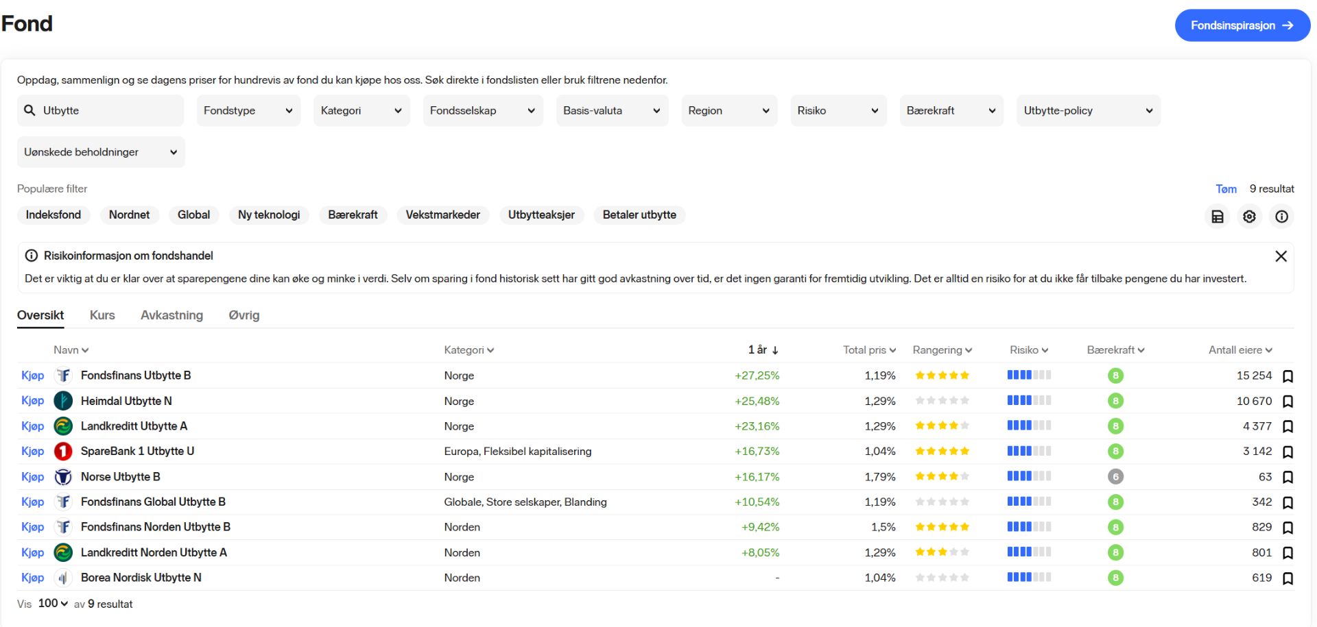 Er du på jakt etter et fond som investerer i robuste selskaper, gir deg lavere svingninger enn resten av markedet, og likevel leverer god langsiktig avkastning? Da bør du bli kjent med utbyttefond og utbytte-ETFer. Her får du en komplett introduksjon til utbyttefond. Ønsker du mer informasjon om utbytteaksjer: Beste utbytteaksjer 2025